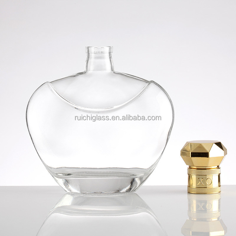 Η Κίνα κατασκευάζει διαφανές τετράγωνο σχήμα 700ml 750ml δείγμα μπουκάλι οινοπνεύματος 100ml χρυσό καπάκι